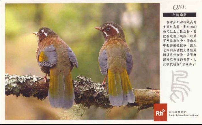 Formosan Laughing Thrush, living at elevations of 2000 meters. Often searching for food in tourist areas or rummage through garbage cans some peple refer to them as "garbage birds". (2008/March)
