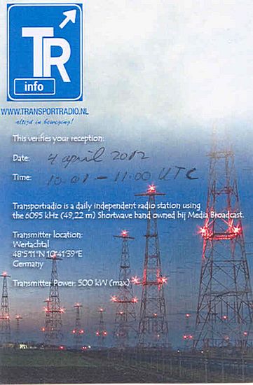 Transport Radio, 6095 kHz, via Wertachtal, April 2012.