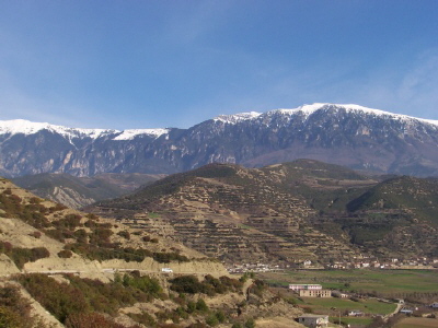Am Fuss des Tomorri-Gebirges sind einige Dörfer, in denen Landwirtschaft und Viehzucht betrieben wird© 2008 Astrit Ibro