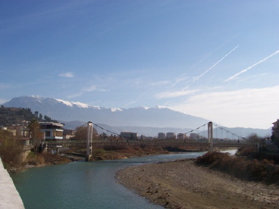Neue Brücke mit dem Tomorri-Berg im Hintergrund. Tomorri ist der höchste Berg in Südalbanien und ein Pilgerort der Bektaschi Religionsgemeinschaft© 2008 Astrit Ibro