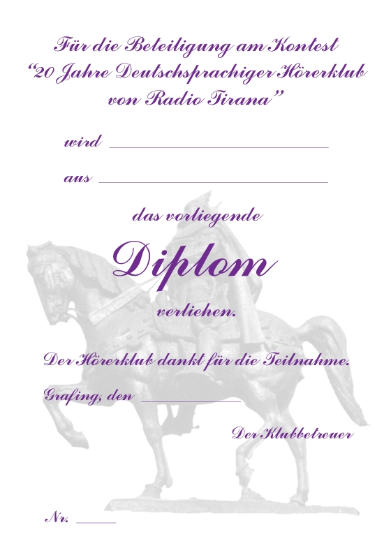 Diplom für die Beteiligung am Kontest