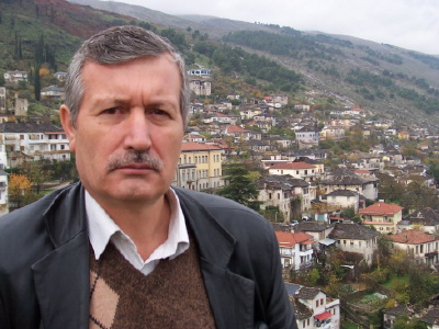 Ein Bild des Foto-Autors mit einem Stadtteil von Gjirokastra im Hintergrund