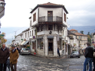 Eine andere Perspektive aus dem Basar-Pass im Zentrum der alten Stadt Gjirokastra
