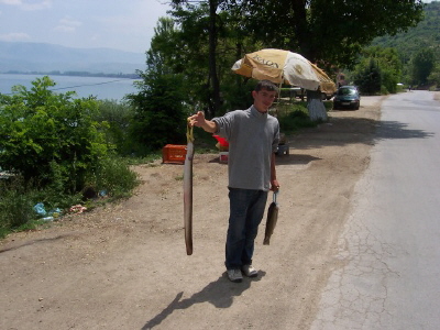 Fischverkauf am Ufer des Ohrid-Sees. Bekannt ist die Fischsorte "Koran" - eine Art Lachsforelle© 2007 Astrit Ibro