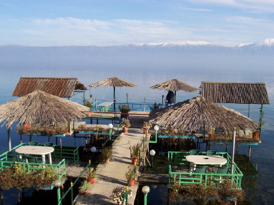 Restaurant am Ohrid-Ufer, - hier kann man einen Kaffee, aber auch das trinksaubere Wasser geniessen© 2008 Astrit Ibro