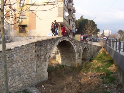 Eine andere Perspektive der Tabaku-Brücke in Tirana