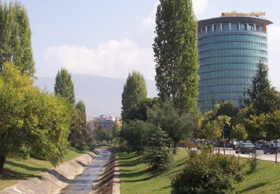 Blick auf den Lana-Bach und das neue Handelszentrum
